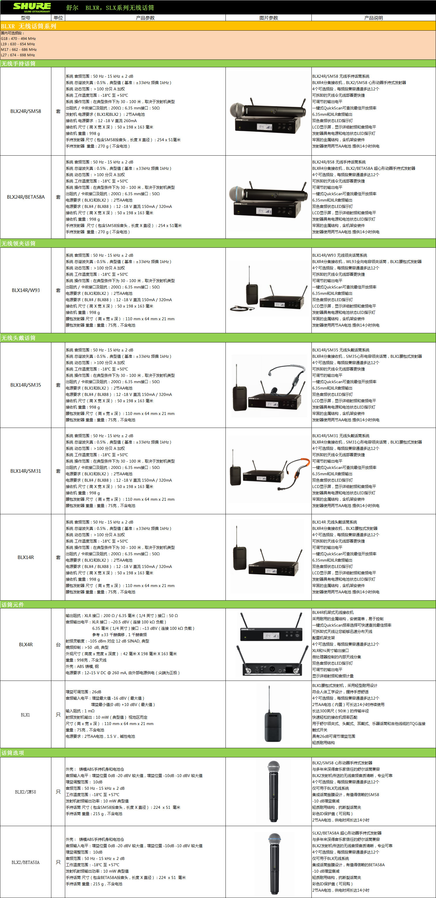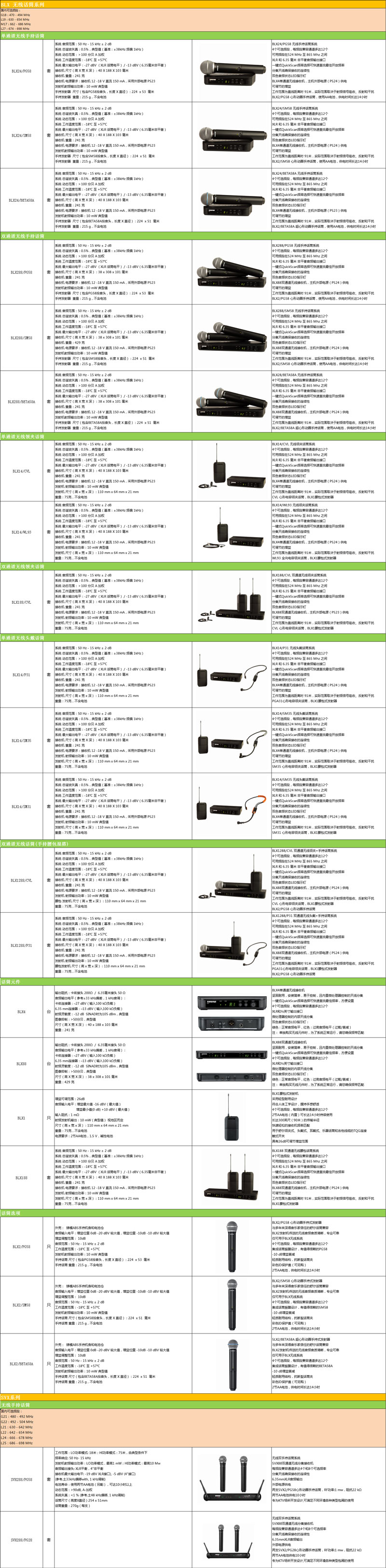 BLX系统兼容多款Shure话筒,您可根据需求随意选择。